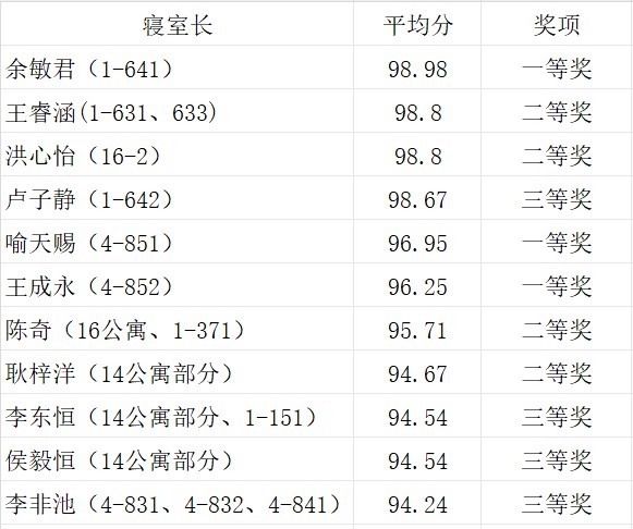 注:奖品由寝室长统一领取,寝室长发放到个人,具体事宜请联系生活部刘同学(15153920882)