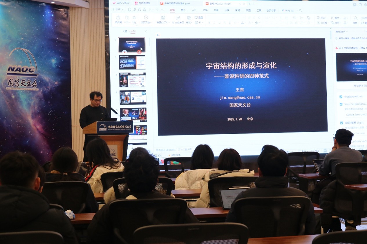 上午10时,活动在国家天文台王杰研究员题为“天文学研究范式与青年成长路径”的精彩报告中拉开序幕。王老师从理论模型、数值模拟、数据观测到数据挖掘,系统梳理了当代天文研究的多元范式,并指出海量真实数据正推动着科学范式的悄然革命。