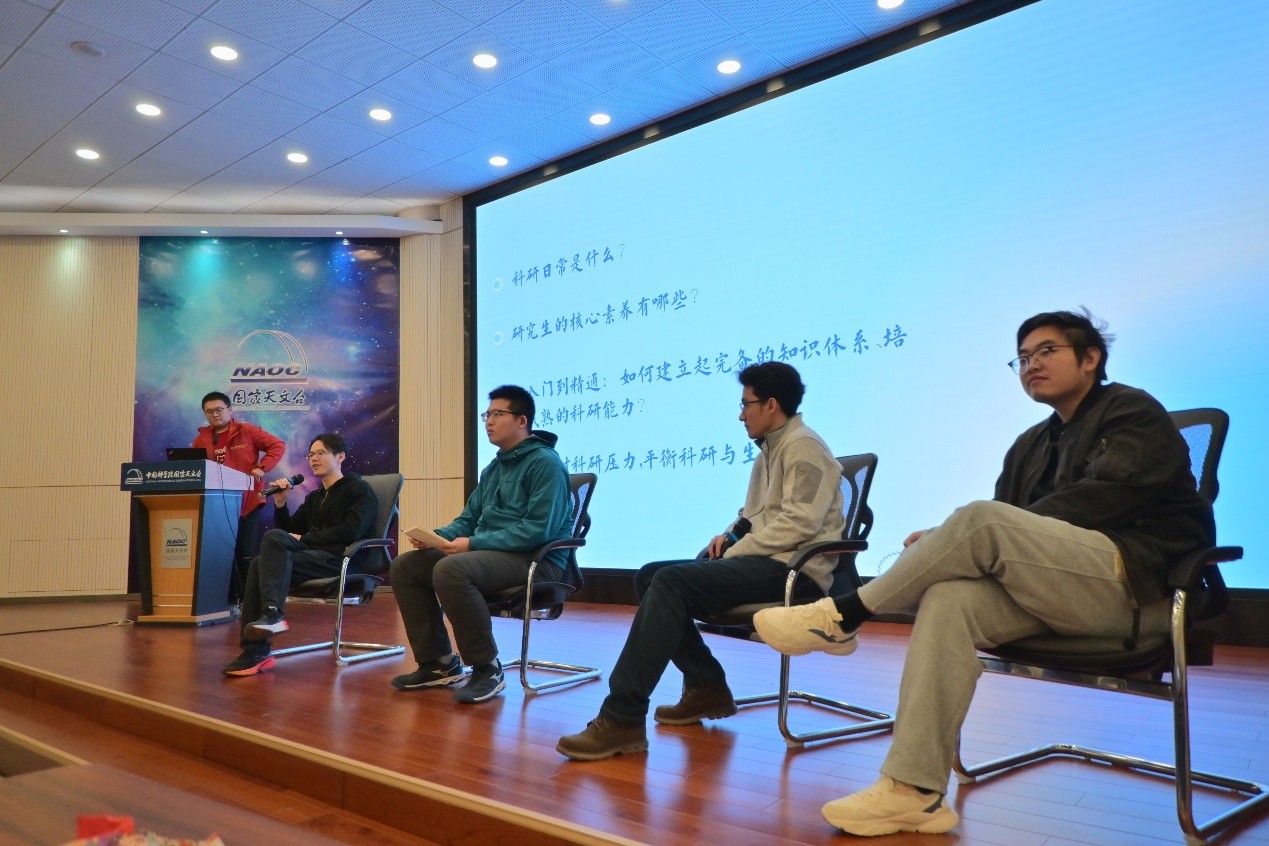 午间时分同学们与国家天文台学长代表围坐一堂,展开了一场别开生面的“研究生生存指南”交流会。那些关于科研日常与心态建设的真经”,在轻松的氛围中倾囊相授: