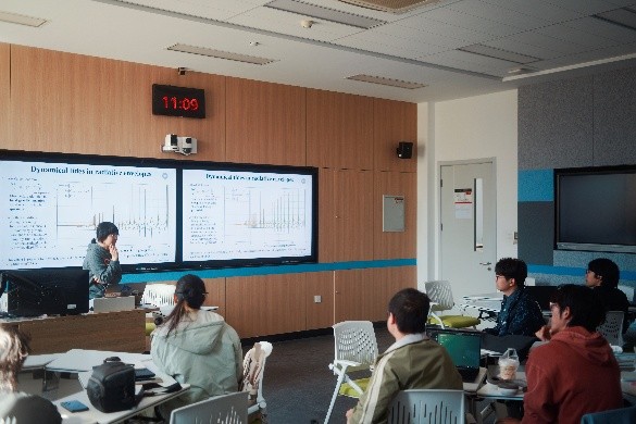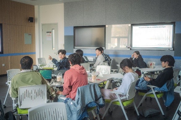 活动过程中,孙萌老师鼓励大家就报告内容提出问题、进行讨论。同学们围绕星震分析与潮汐相互作用的关系、高偏心率轨道心跳星反映的物理原理等问题踊跃提问,现场气氛十分热烈。孙萌老师始终耐心倾听、细致解答,不时与同学展开互动,亲切随和的风格赢得了阵阵掌声。